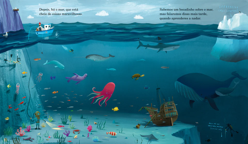 Parece grande, o planeta Terra. E sabemos muito sobre ele. Há animais de todos os tamanhos, formas e cores, a viver no céu, na terra e no mar. E existimos nós, os seres humanos. Podemos parecer diferentes uns dos outros, mas que não haja dúvidas: somos todos pessoas. Somos muitas, mas o que existe chega para todas. Portanto, sejamos gentis umas com as outras e com este planeta deslumbrante, que é tudo o que temos.
