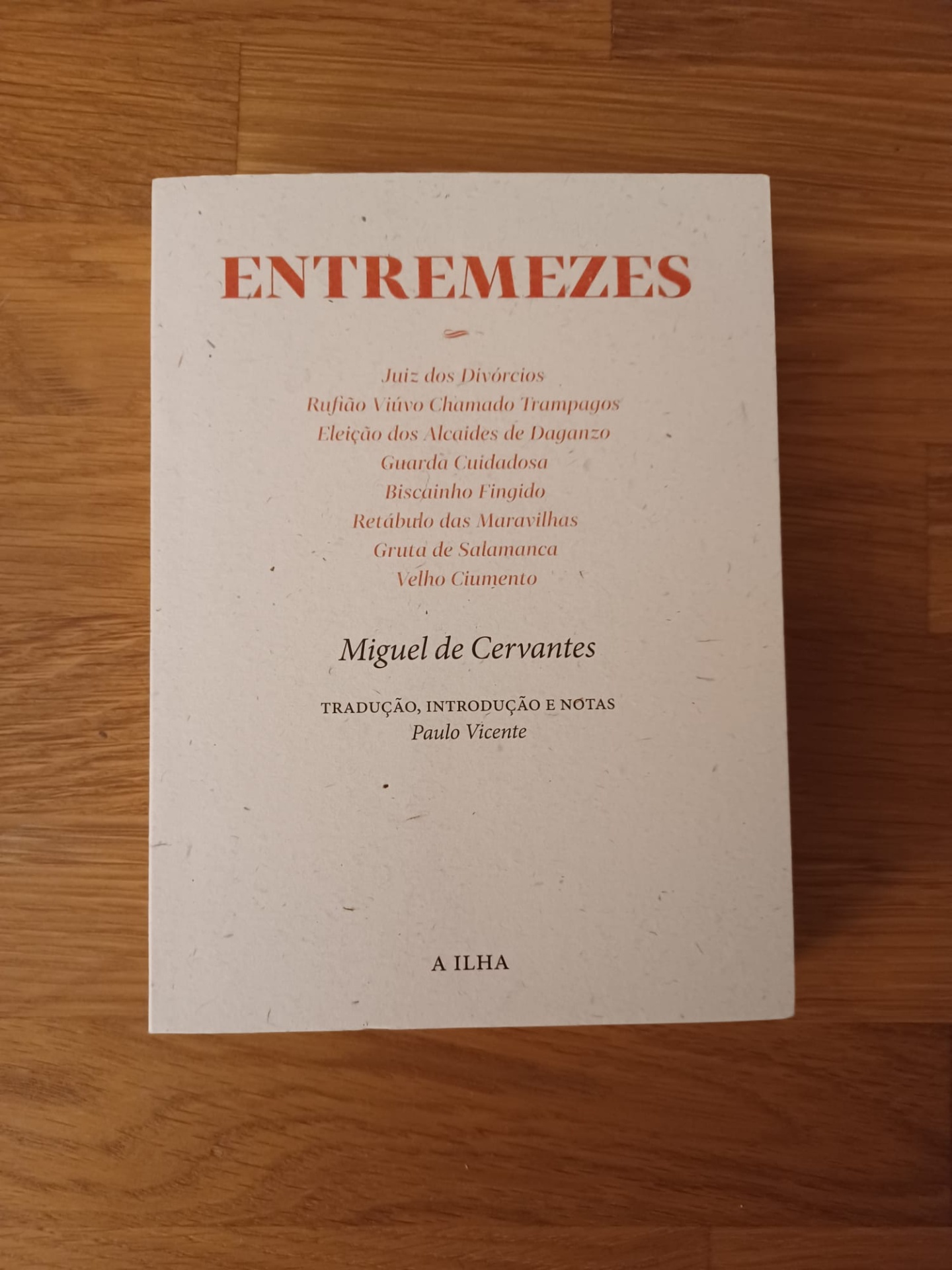 • Livro ENTREMEZES de Miguel de Cervantes com capa branca e letras vermelhas e pretas