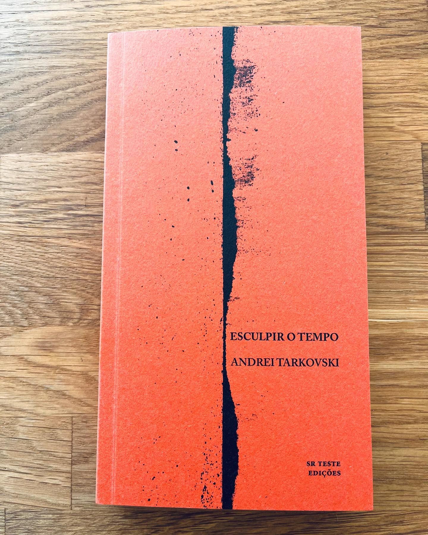 • Livro laranja com faixa preta e texto ESCULPIR O TEMPO ANDREI TARKOVSKI
