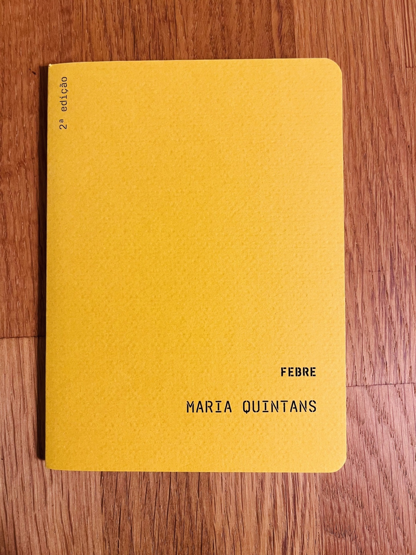 Febre, de Maria Quintans 6,00 € Desconto de %. IVA incluído. Partilhar Comprar Contactar Febre Autora: Maria Quintans Editora: Nova Mymosa Ano: 2022 Poesia de Maria Quintans. Edição da Nova Mymosa Marca Nova Mymosa Tags Livros novosPoesiaNova MymosaPoesia portuguesaMaria Quintans
