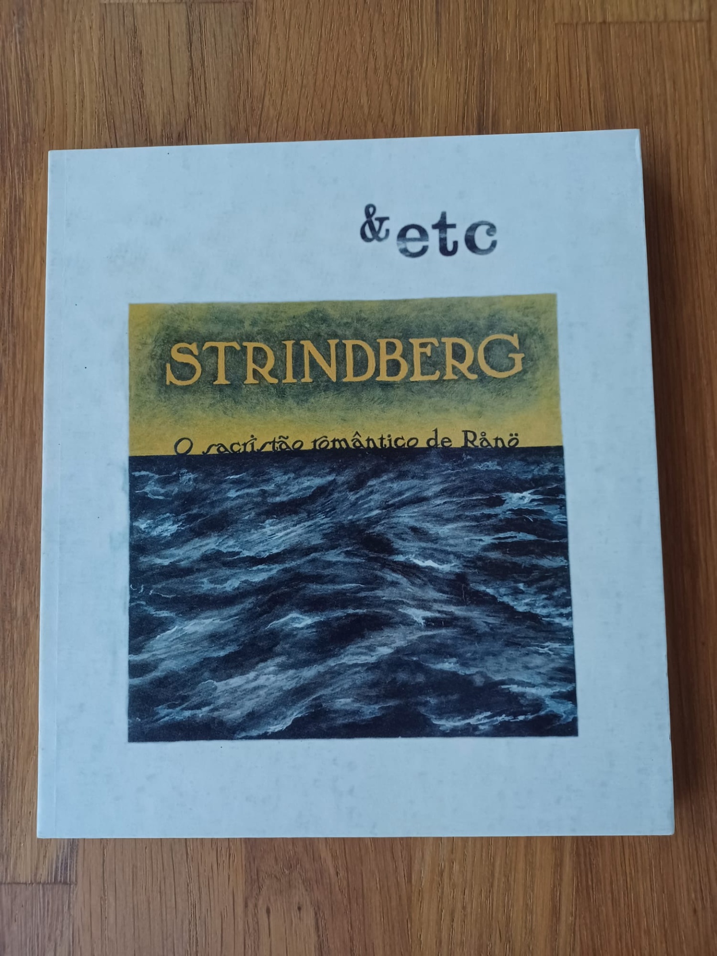• Livro STRINDBERG com ilustração de mar e texto em capa branca