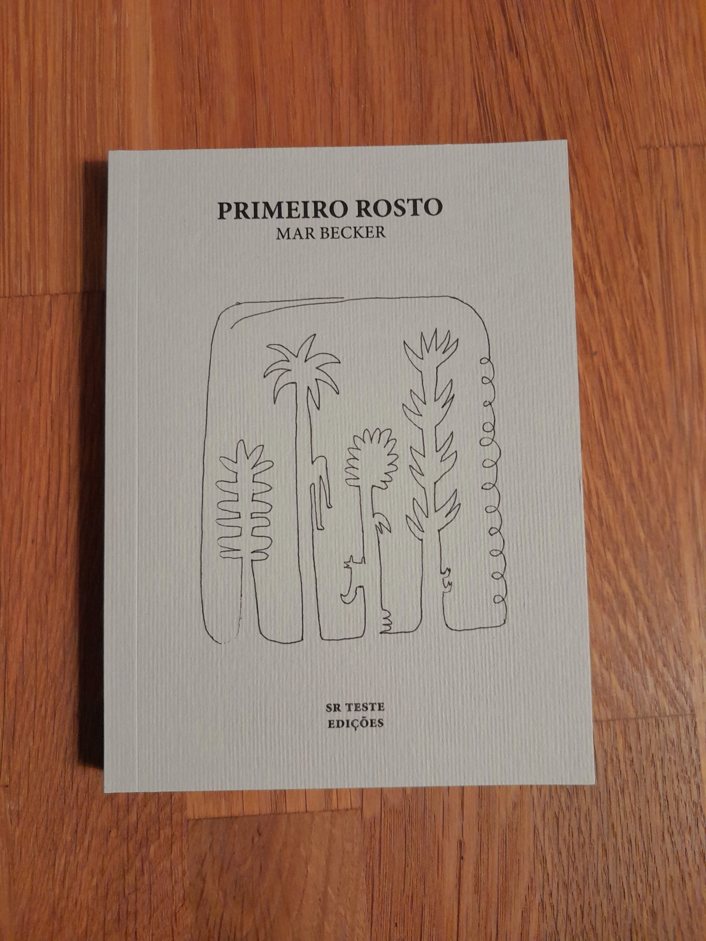 • Livro PRIMEIRO ROSTO de MAR BECKER com capa branca e ilustração de árvores pretas.